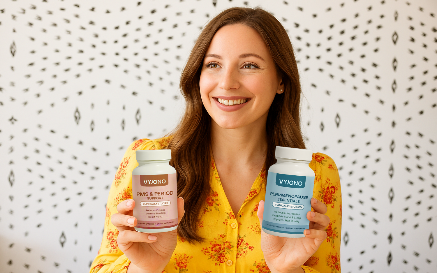 Vyjono was founded out of a passion for women’s health and wellbeing. The journey began with a search for answers to hormonal balance and monthly cycle challenges. Drawing on scientific expertise, Vyjono created its first clinically studied supplement designed for fast, effective relief. Now, Vyjono is on a mission to inspire a future where women’s health and hormones are celebrated and understood.